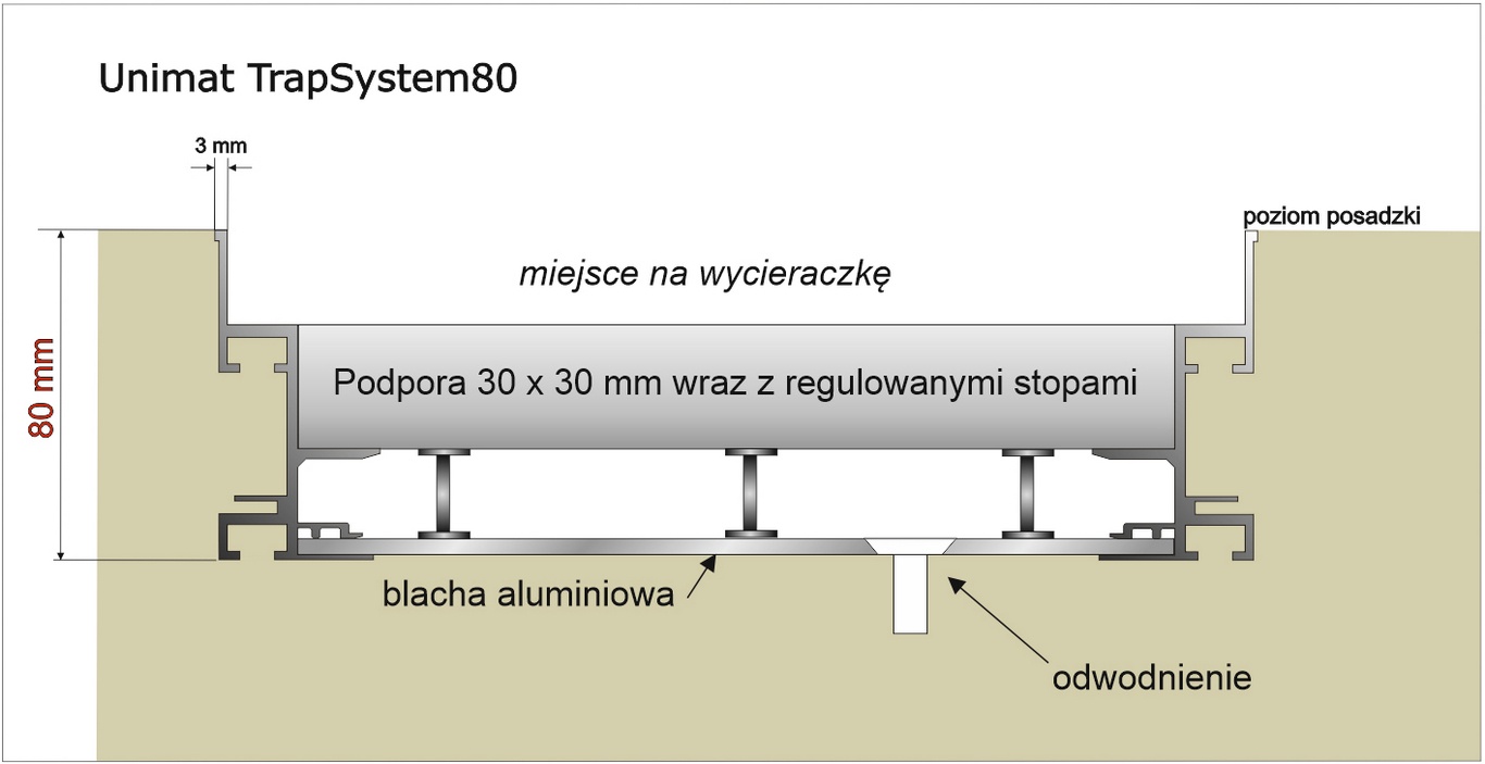 Unimat TrapSystem80 can be used with all doormats Unimat 22 and grilles Unimat 20 KRATA.