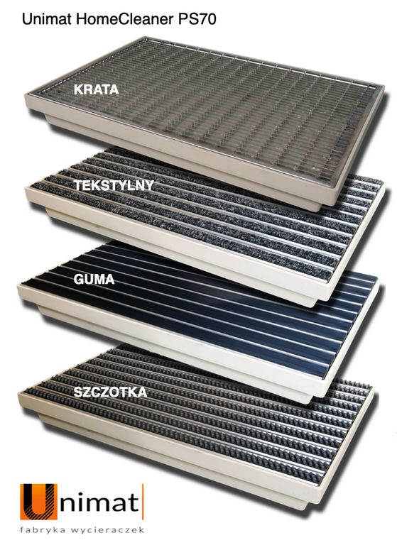 Unimat HomeCleaner PS70 can be used with all types of doormats from section Unimat 22 and galvanized steel grilles Unimat 20 KRATA.